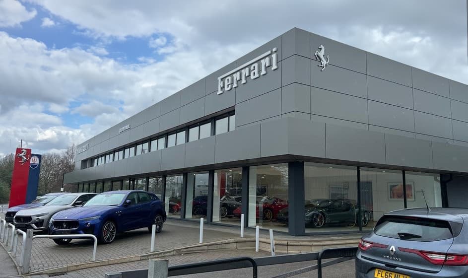 Externally, the works included refurbishment of the front and side elevations, featuring the installation of a new cladding system and updated Ferrari signage to create a strong visual statement and reinforce brand recognition.